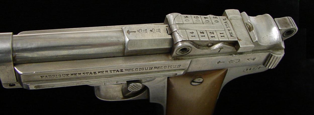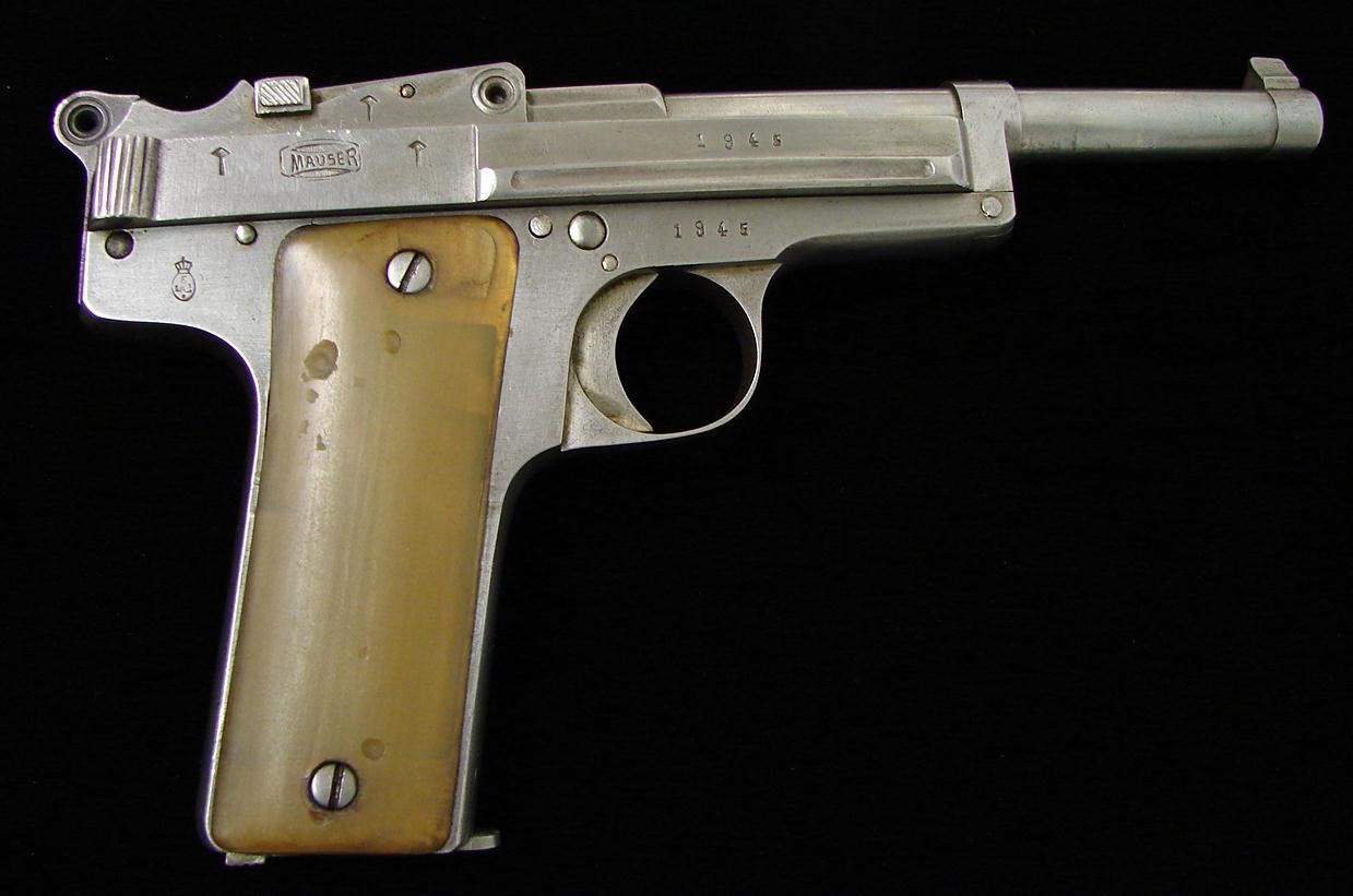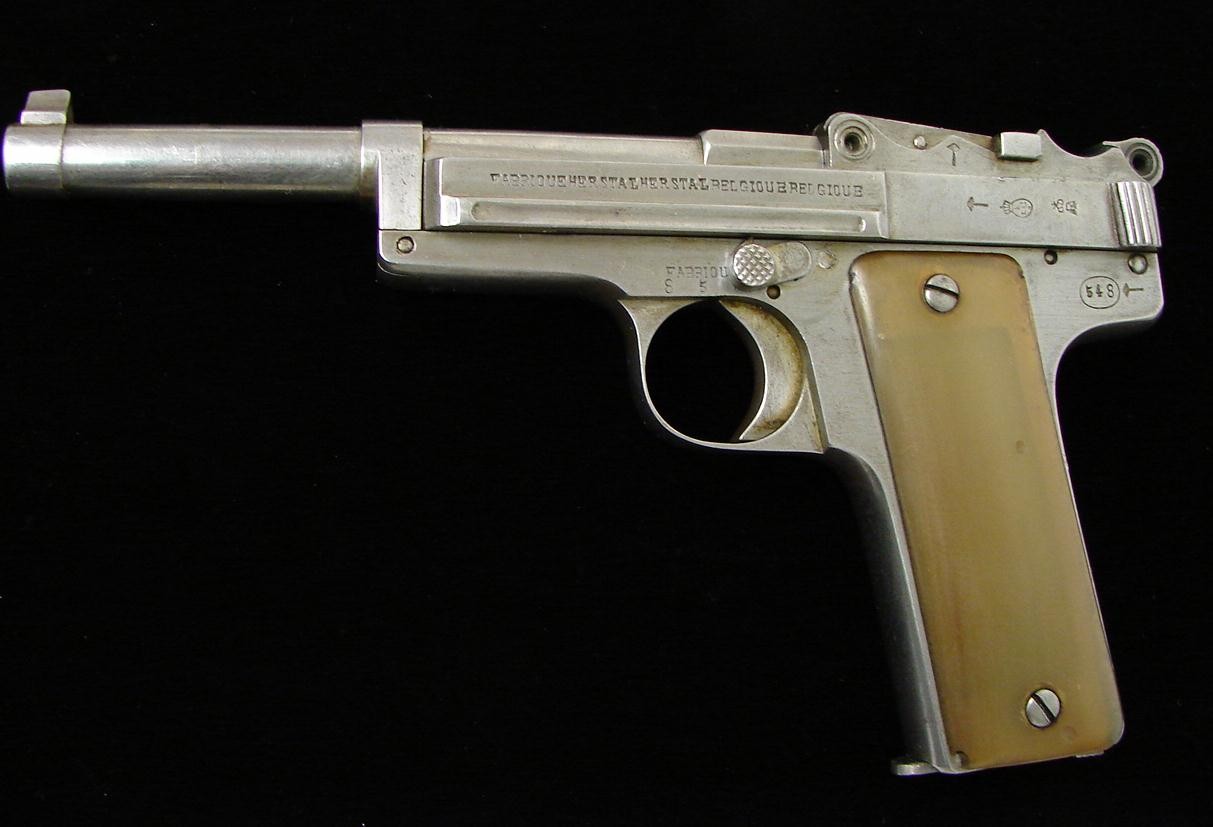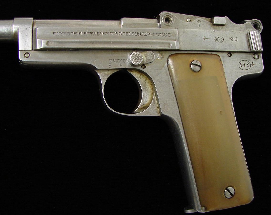 Chinese Semi-Auto Pistol .32 Auto caliber pistol. Very unusual Chinese auto pistol. Probably made in the 1930's. Totally original design. The markings try to show it as Belgian or German. The bore has strong rifling and is dark in the grooves. Horn grips. Bright metal finish. Very good overall condition. Not for firing!