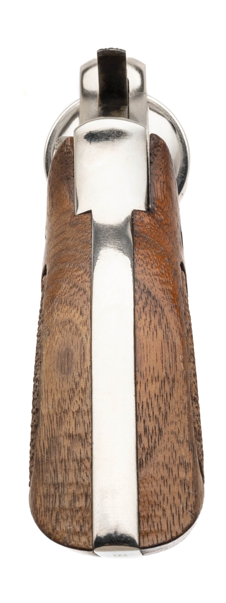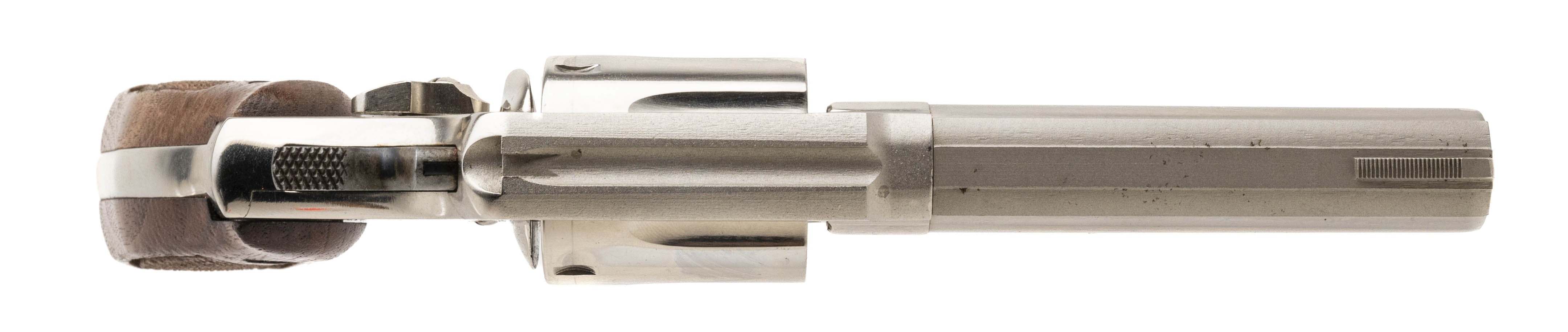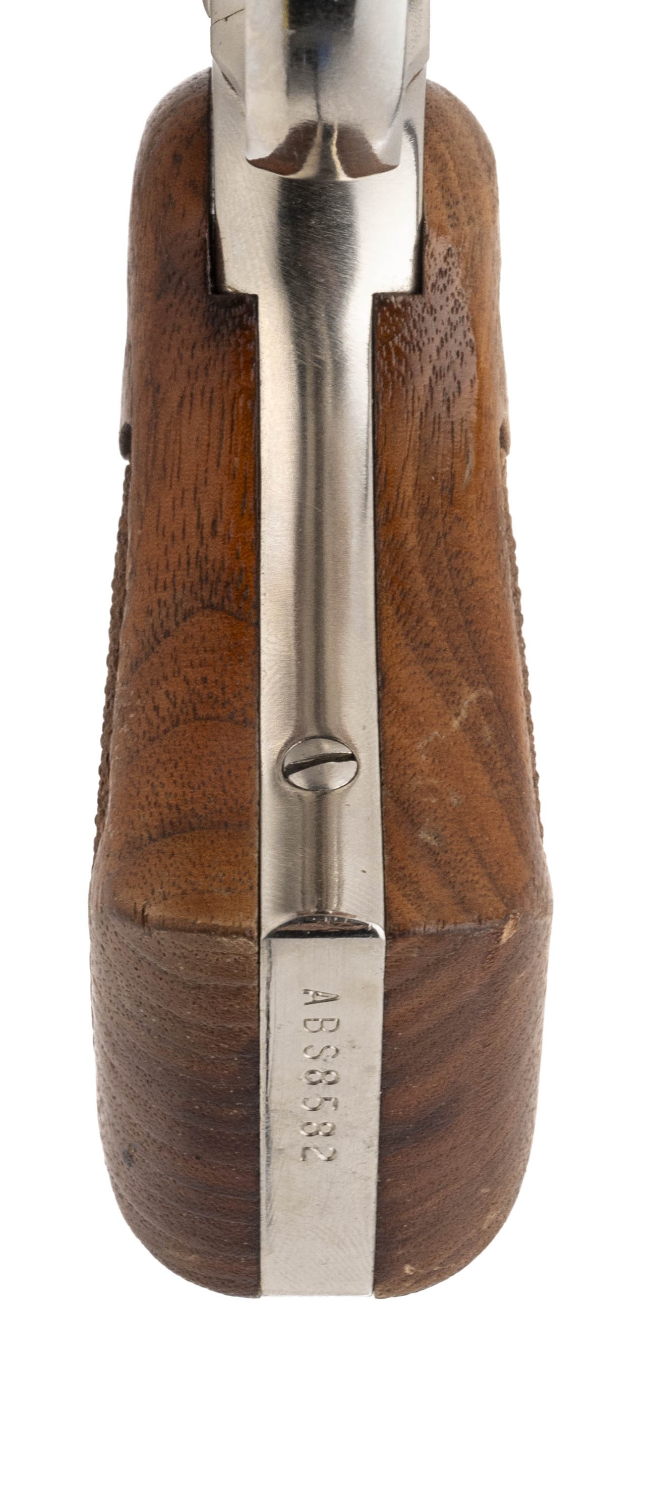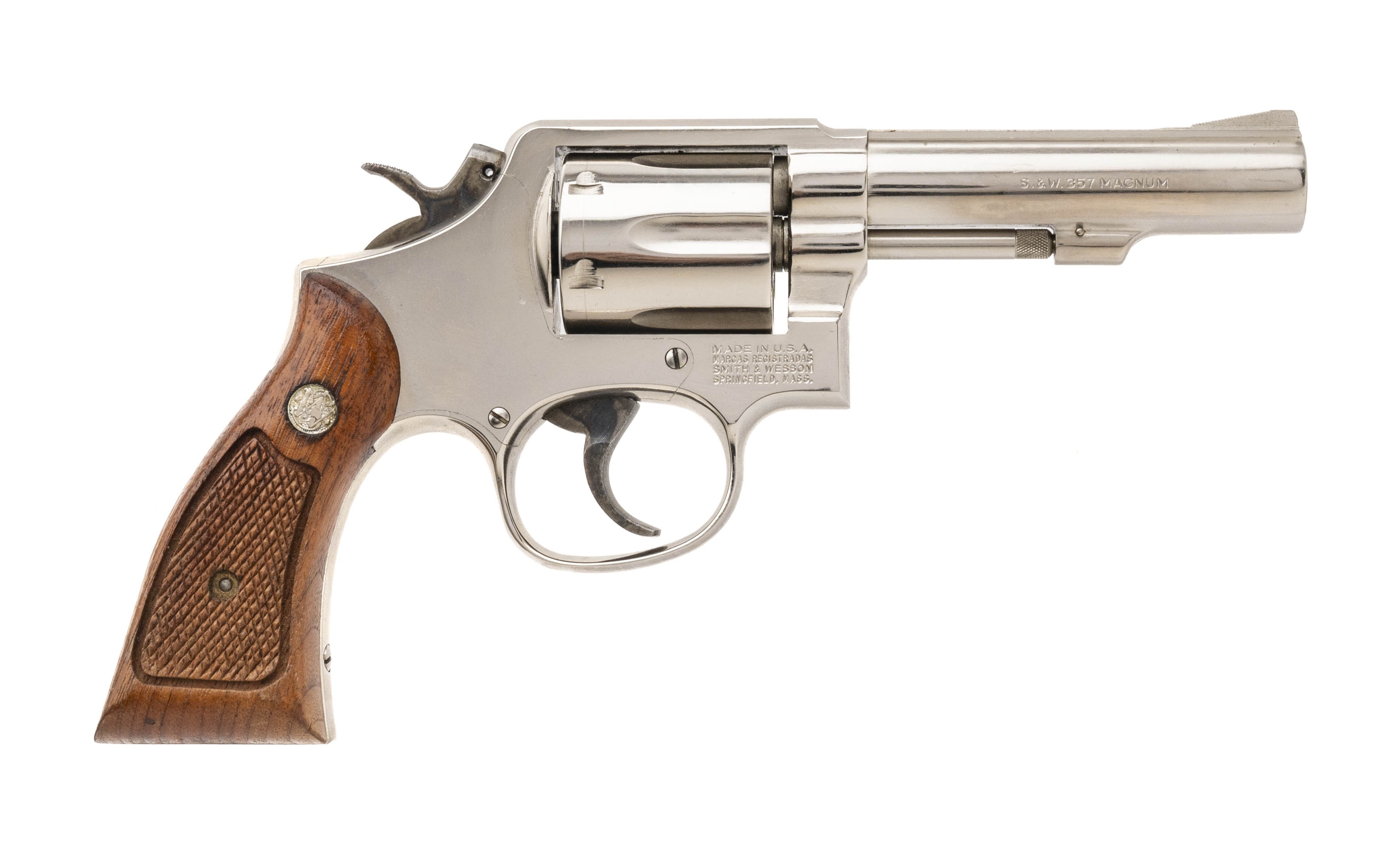 SN: ABS8582. Early 1980's production .357 Magnum caliber with a 4" barrel. Nickel plated revolver with wooden grips. Excellent condition.
