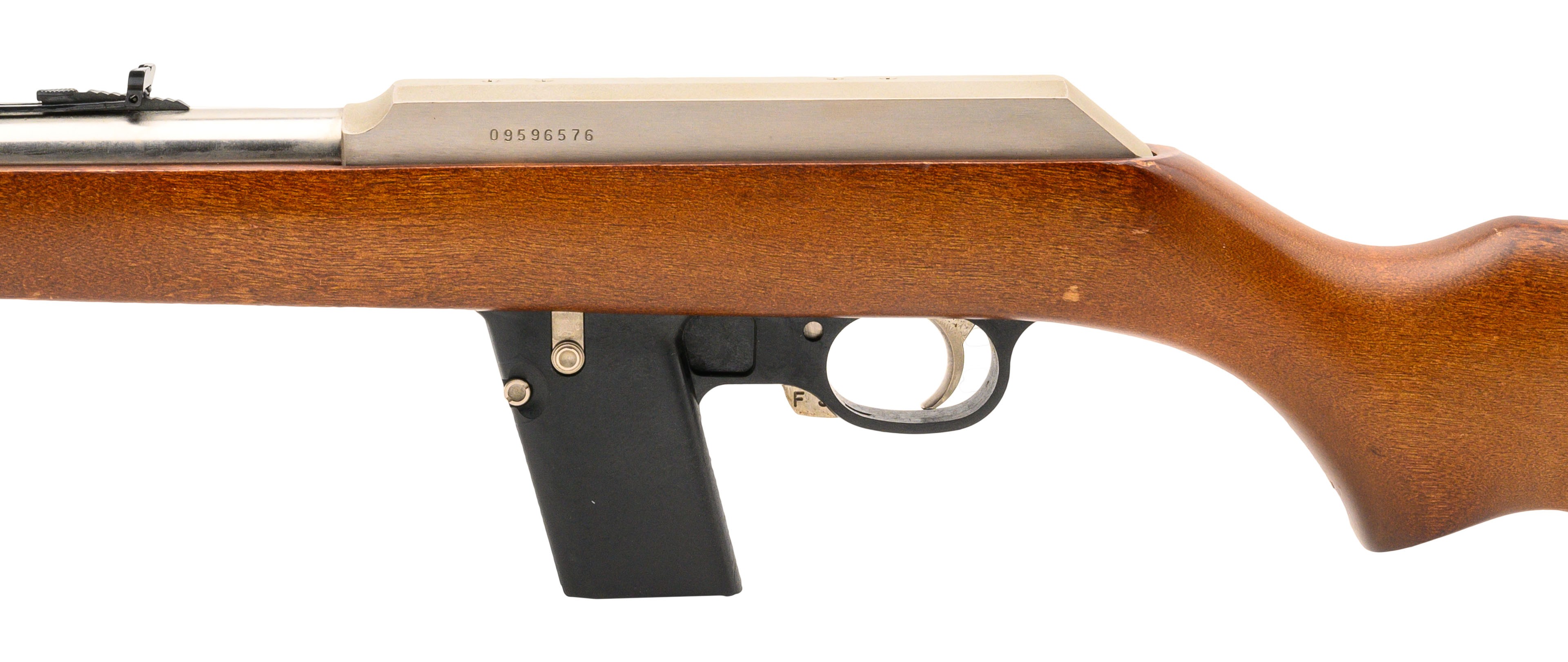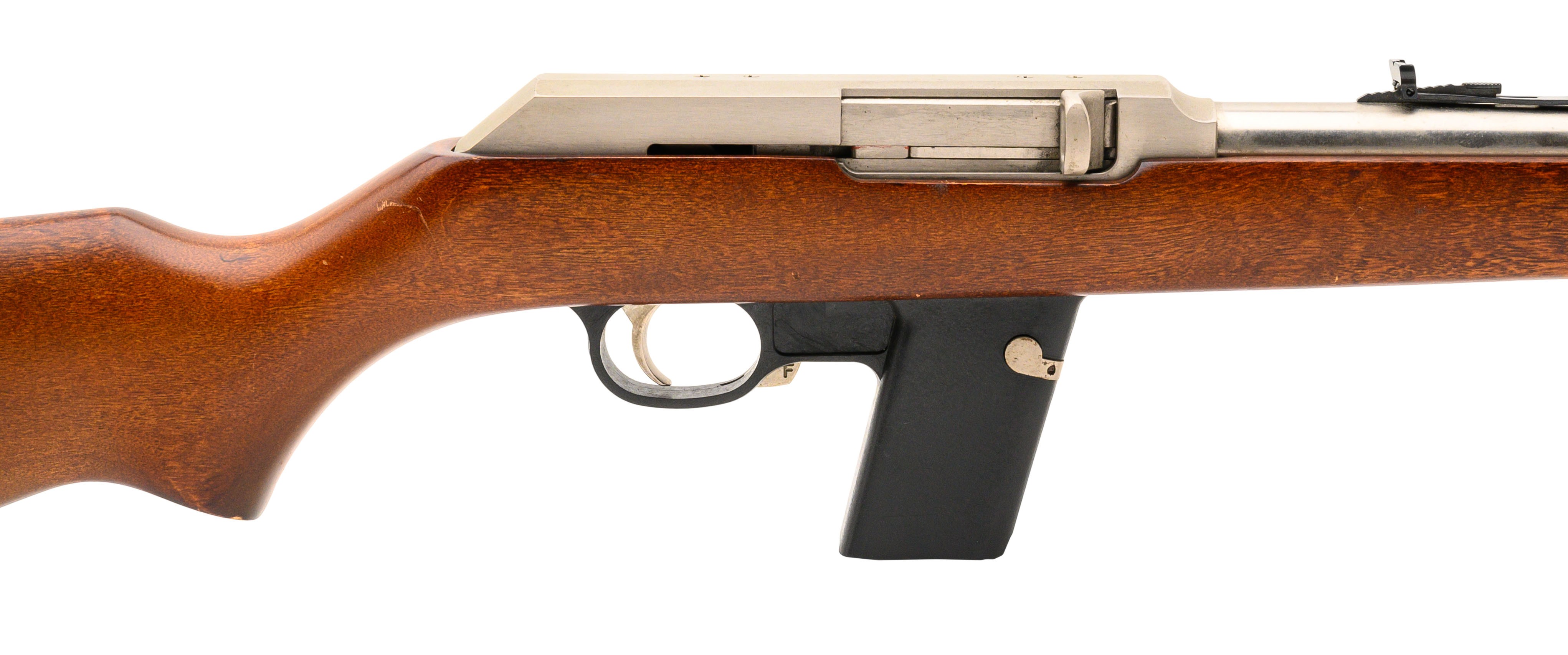 SN:09596576. Made in 1991. 9mm with a 16" barrel. Bore is in excellent condition. Ruger semi-automatic stainless steel rifle. Finish and wood stock are in very good condition. Rifle has adjustable rear sight. Overall condition is very good. (CONSIGNMENT)