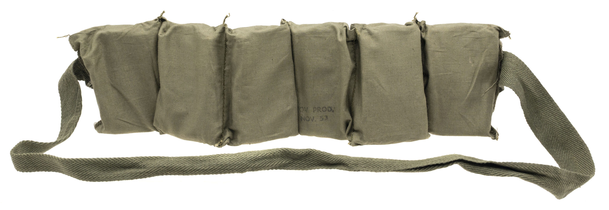120rd bandolier of .30 Carbine in 10 round stripper clips. Bandolier is in very good condition.