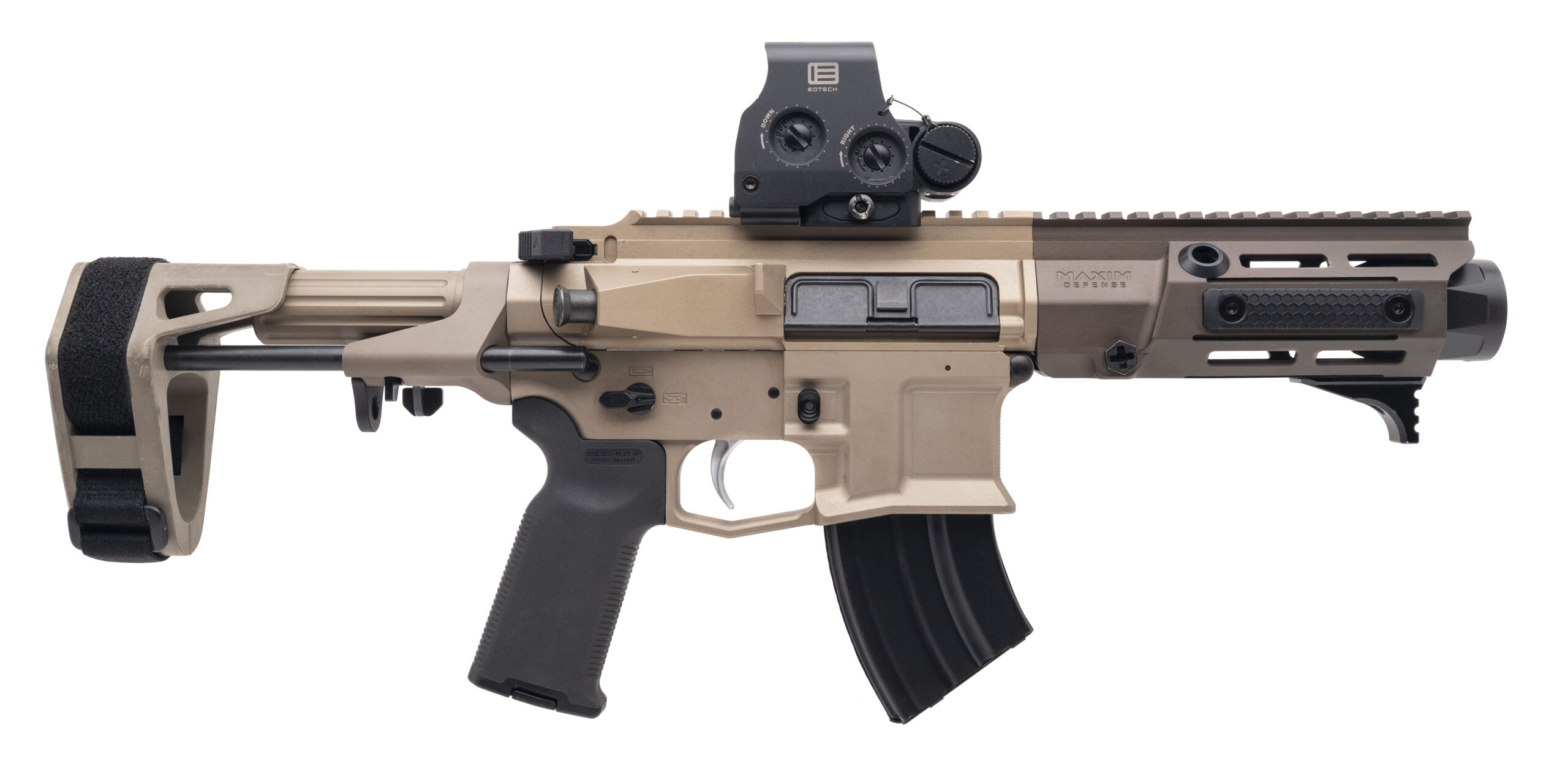 SN: DDM4360848. Modern production, 5.56 NATO with a 10.5" barrel. Bore is bright with strong rifling. Semi-auto tactical pistol with an Eotech 512 hol...