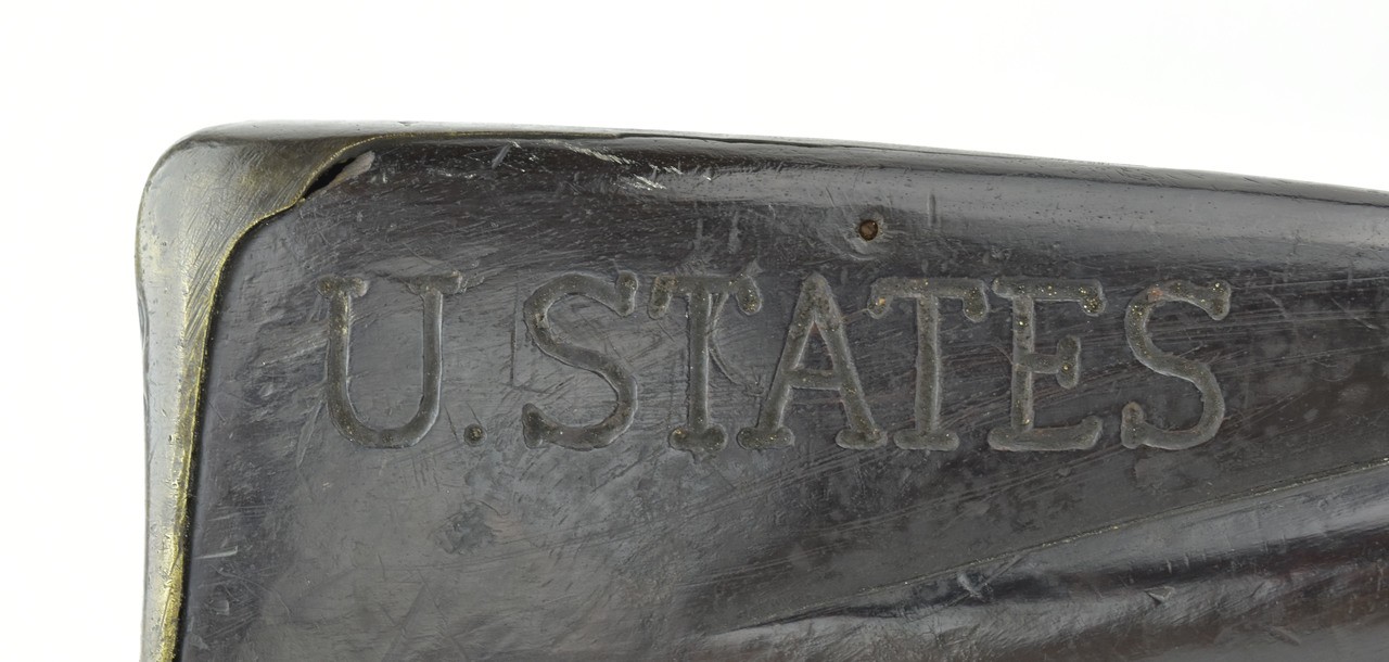British 1st Model Brown Bess 46” barrel. Stock marked (UNITED STATES) boldly in large letters. These U.S. muskets were captured from British Troops and marked to show U.S. ownership. Similar marks are found on French Charleville muskets (supplied by France to the U.S. troops). Very hard to find in in nice condition. Overall condition is very good. Action works perfectly. Lock is faintly Tower marked on the tail. Also marked U.S. faintly on the top pf breech. Great piece of Revolutionary War history! $23,000.00