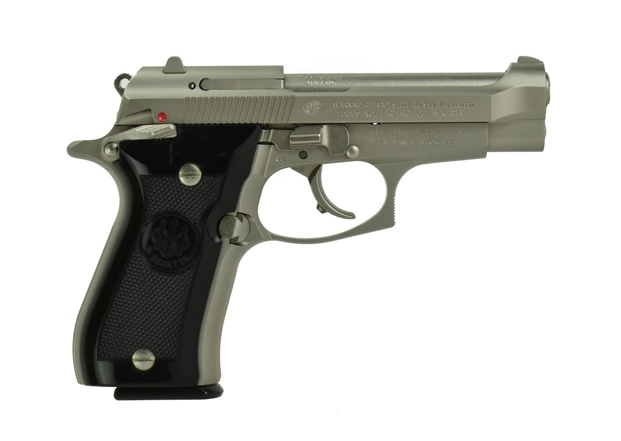 Beretta 84 FS Cheetah .380 caliber pistol. 13 Round model with satin nickel finish in excellent condition.
