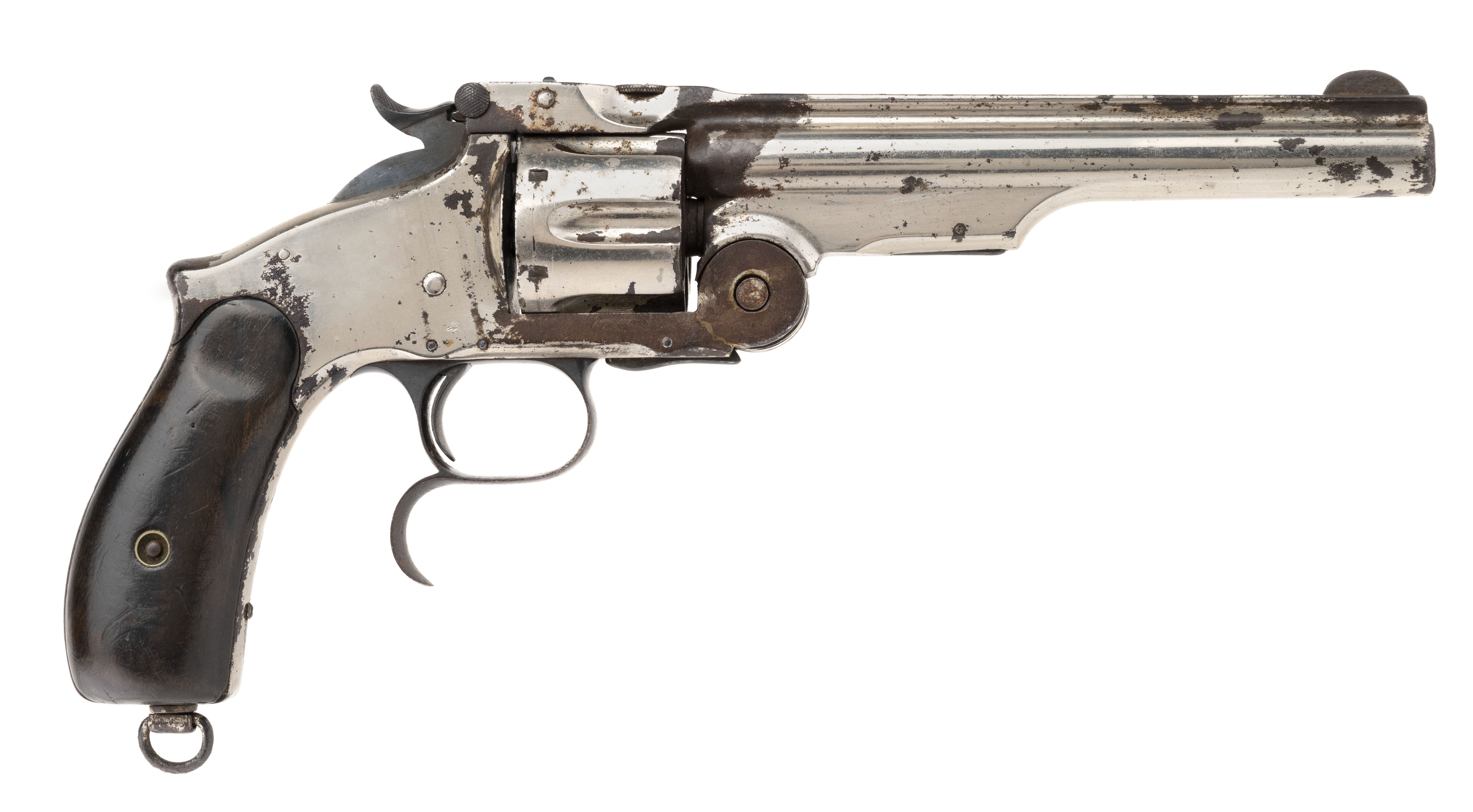 Smith & Wesson 3rd Model Russian Revolver. Made in the 1870s. This gun is in very good condition with 80% of the original nickel. Gun is all matching. Bore has strong rifling with pitting.