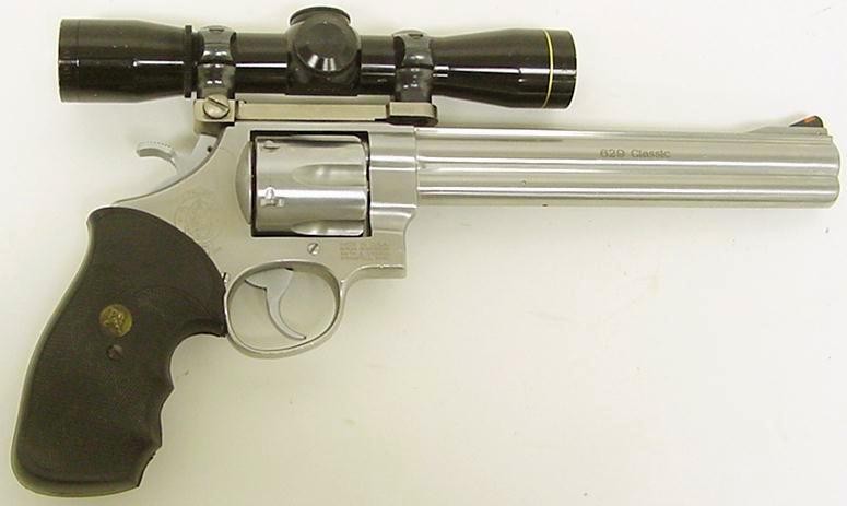 Smith & Wesson Model 629 Classic .44 Mag caliber revolver with Leupold 4x scope.