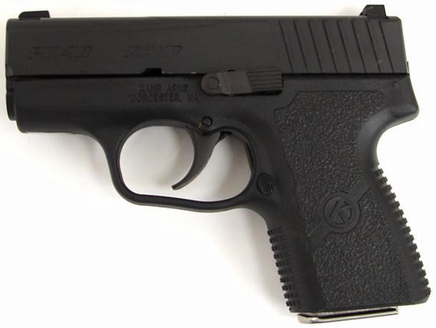 Kahr Arms PM40 .40 S&W caliber pistol. Polymer frame pocket pistol with black finish and tritium sights.