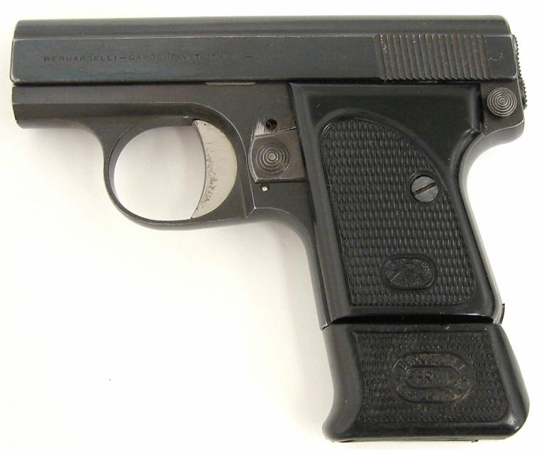 Bernardelli V.P. .25 ACP caliber pistol. Post-war Italian pocket pistol with unusual extended mag. Proof dated 1949.