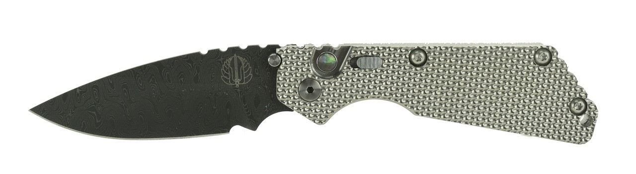 Pro-Strider SNG Titanium Custom (#3 of 30) with Nichols Damascus blade, Mother of Pearl push button and CNC textured titanium frame.