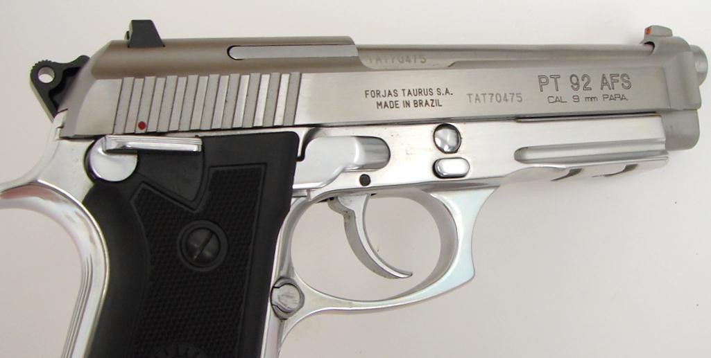 Taurus PT92 AFS 9mm Para caliber pistol. Full size stainless model with tactical rail. New.