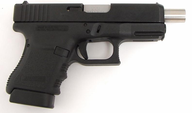 Glock 30 .45 ACP caliber compact pistol with extended KKM precision barrel. In excellent condition.