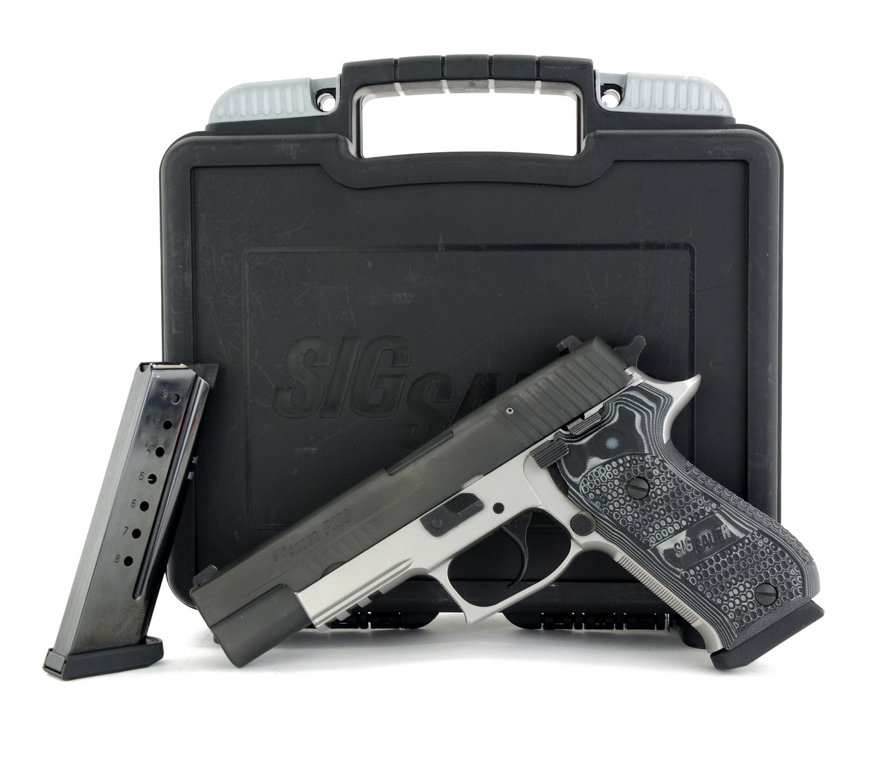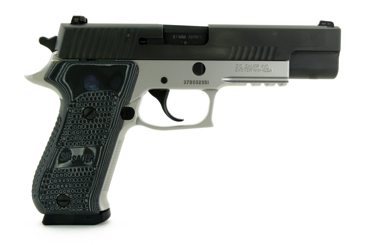 Sig Sauer P220 Match Elite 10mm caliber pistol. Match Elite 10mm with 2-tone finish, night sights and G10 grips. Excellent condition with box and magazine.