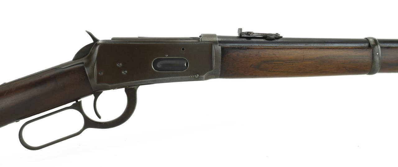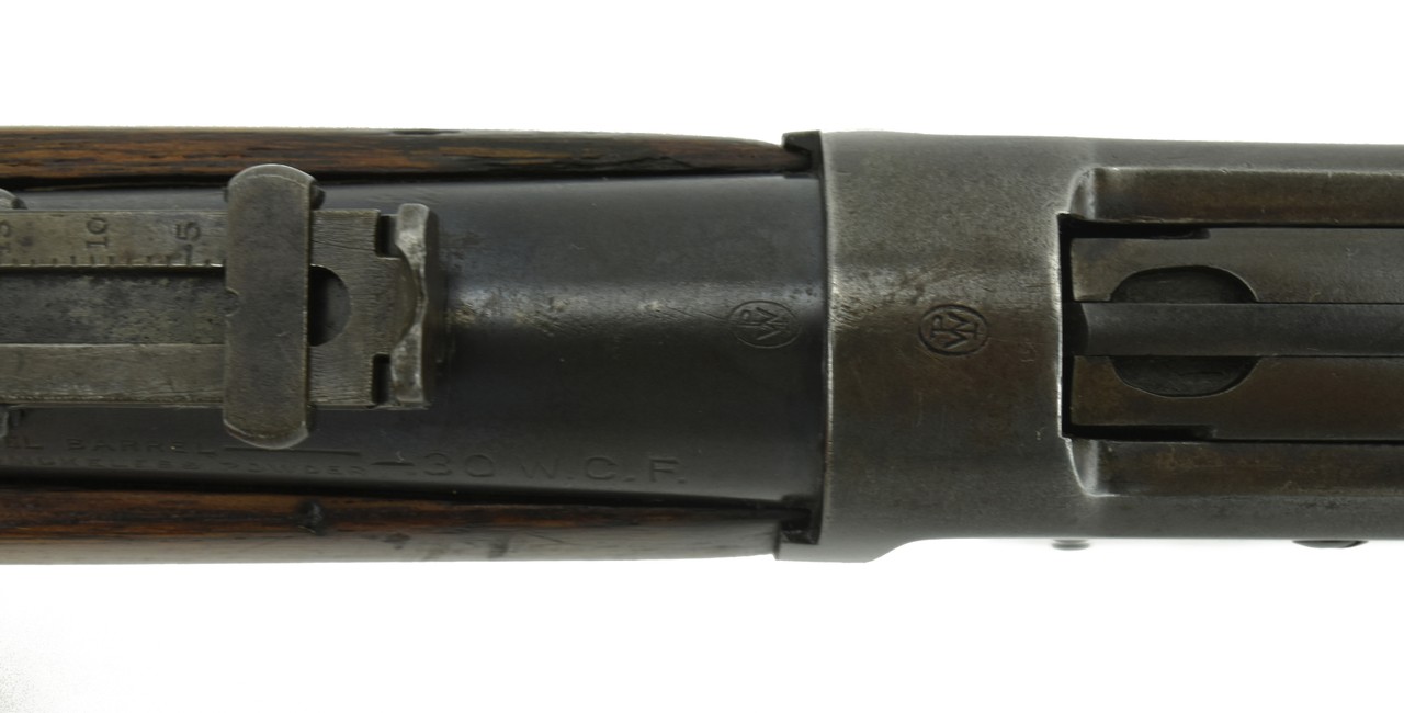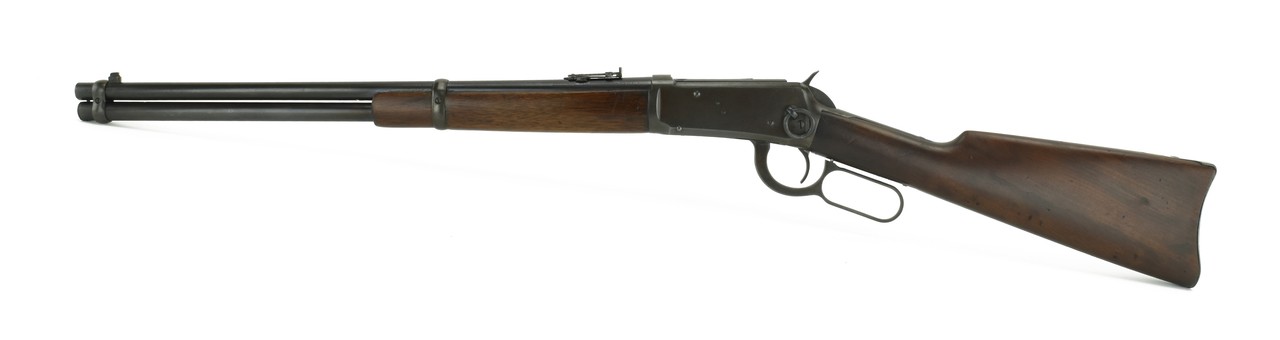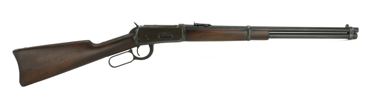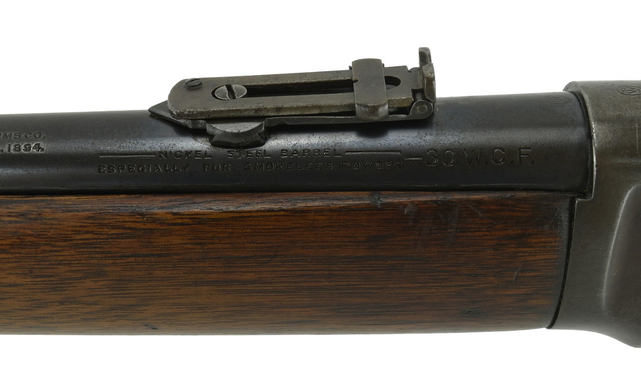 Winchester Model 94 .30 WCF caliber carbine. Saddle Ring carbine made in 1925. Bore has strong rifling with frosting in the grooves. Barrel has approximately 95% original blue. Receiver has a brown patina. Action works perfectly. Very good overall condition.