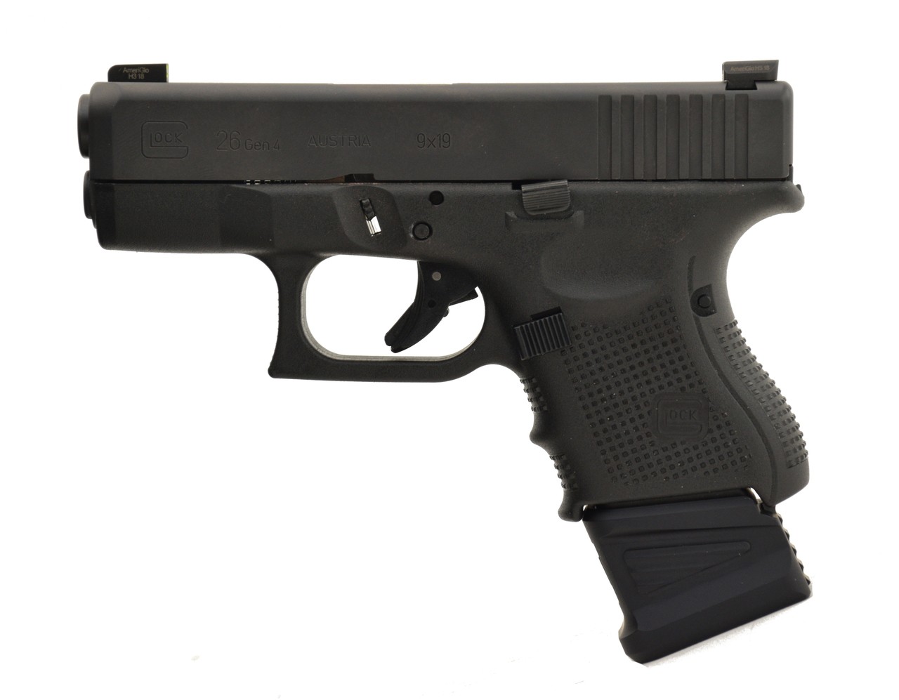 Custom Gen 4 Glock 26 with Ameriglo night sights, extended slide stop and ZEV plus 5 magazine extension.