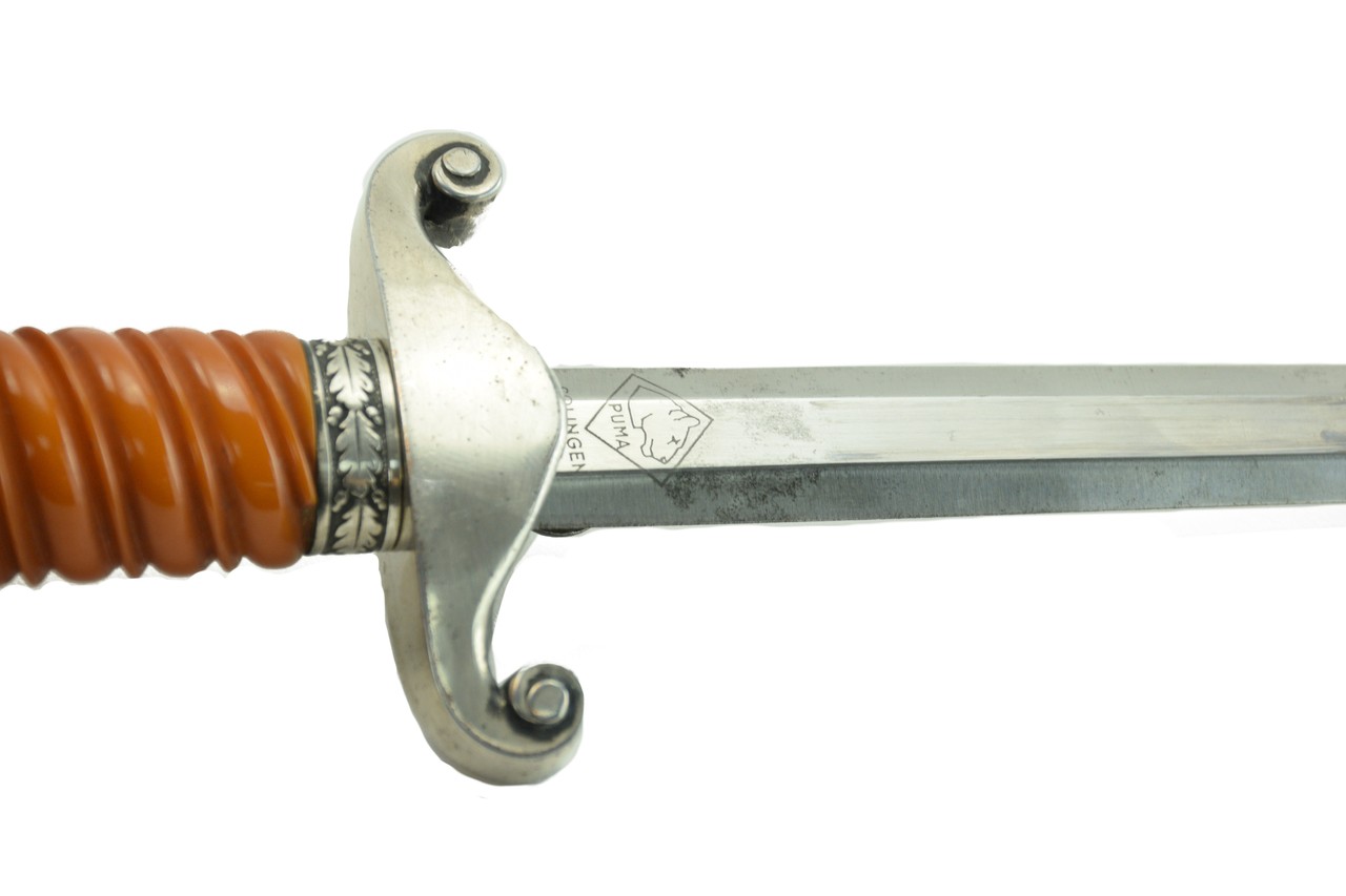 German WWII Army Officers Dress Dagger by Puma. One of the more desirable makers, Puma. Popular “burnt orange” hilt. Excellent condition. Comes with Portepee, also in excellent condition. Beautiful dagger.