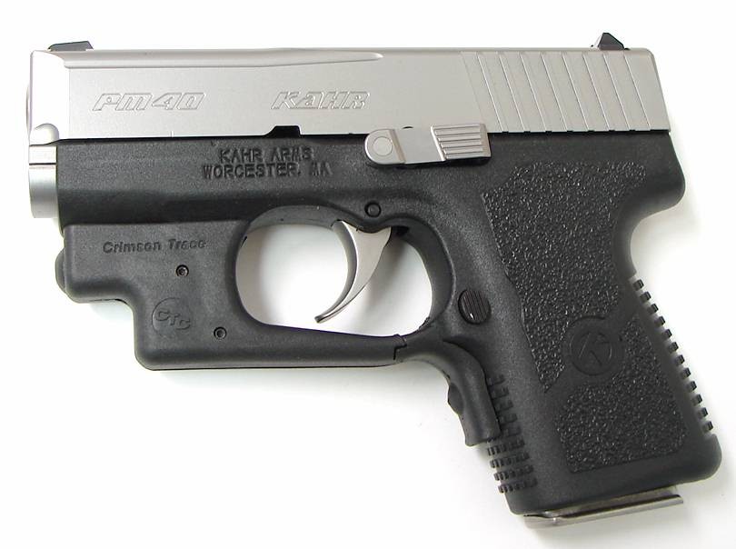 Kahr Arms PM40 .40 S&W caliber pistol. Compact stainless model with Crimson laser grips. New.