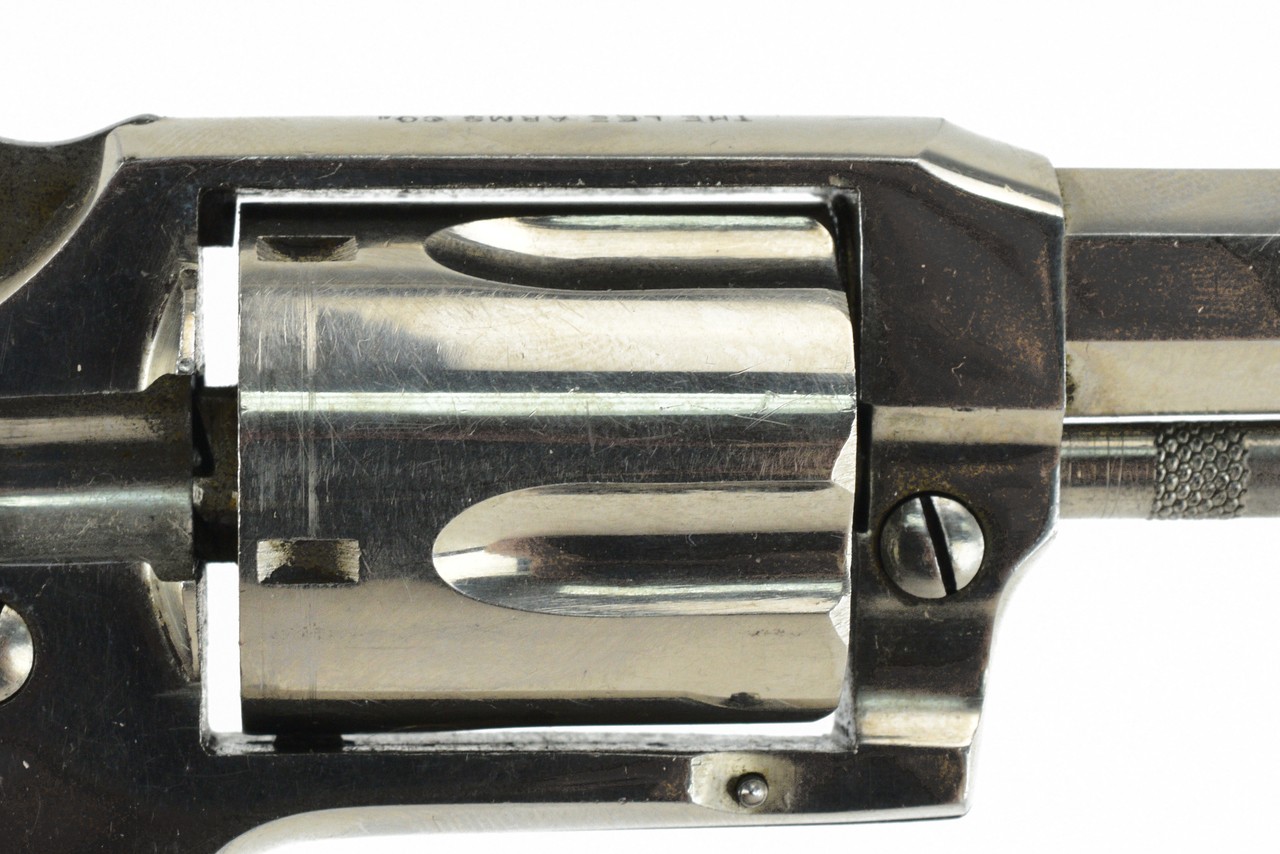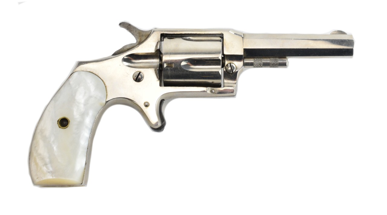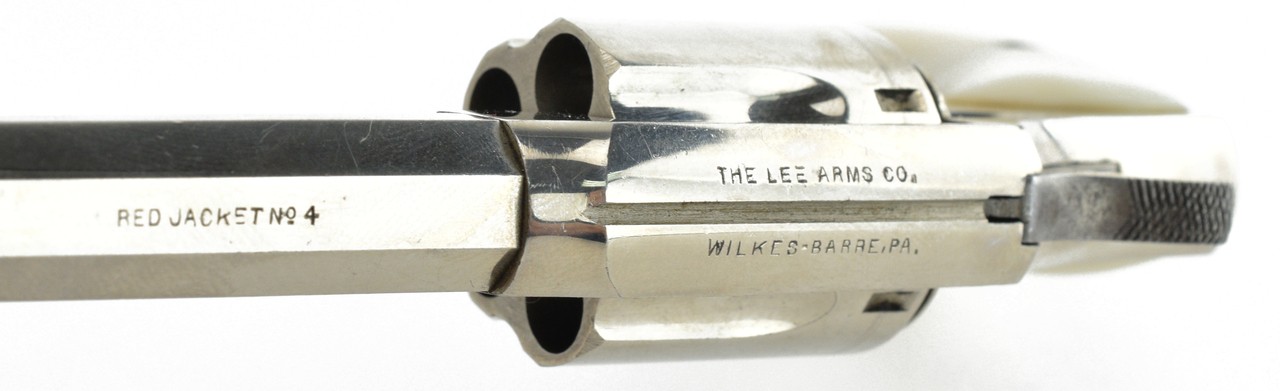 Lee Arms Co. “Red Jacket No. 4” .32 Caliber revolver. Wilkes Barre Pennsylvania manufacture “Red Jacket no. 4”. Gun is unfired and is in mint perfect as new condition with 100% original finish and pearl grips. Caliber is .32 S&W rimfire.