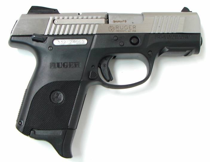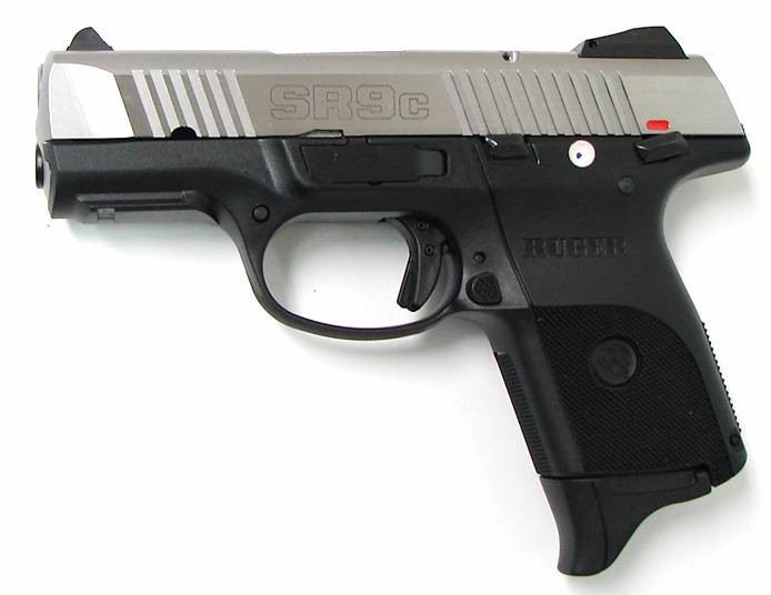 Ruger SR9 C 9mm caliber pistol. Two-tone compact model with 10 round magazine. New.