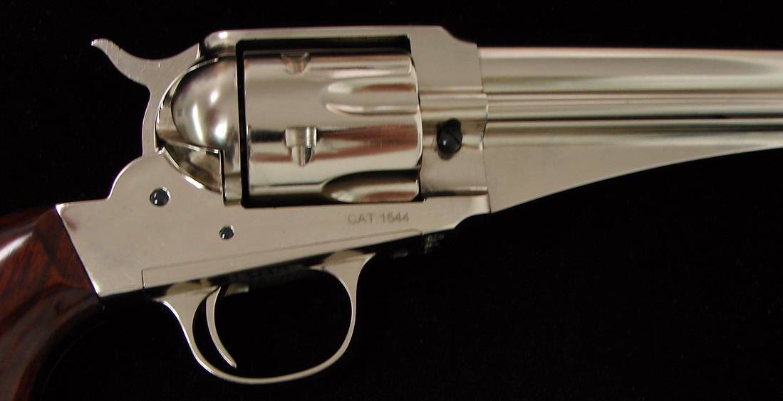 Uberti 1875 Outlaw .45 LC caliber revolver. Nickel Remington replica. New.