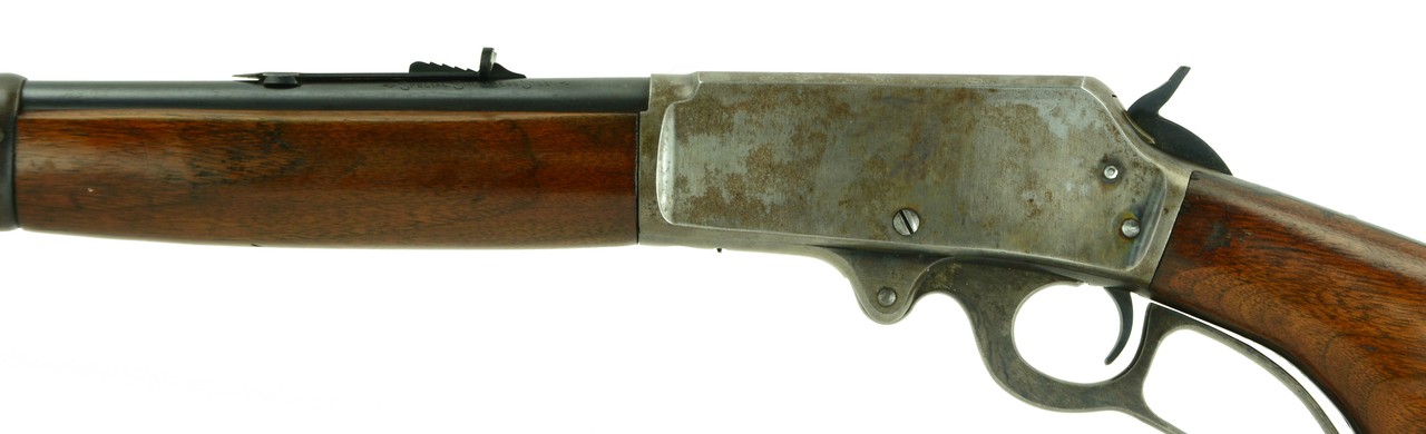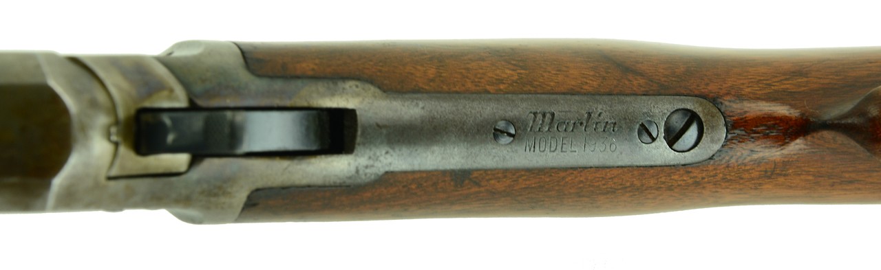 Marlin 1936 30-30 caliber rifle. Early model with traces of case colors on the receiver. The barrel and mag tube are excellent with approximately 97% original blue. The wood is near excellent. Barrel is marked “Special Smokeless Steel”. Action works perfectly.