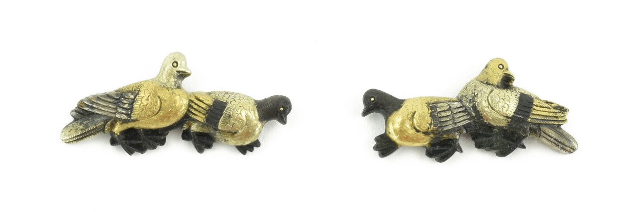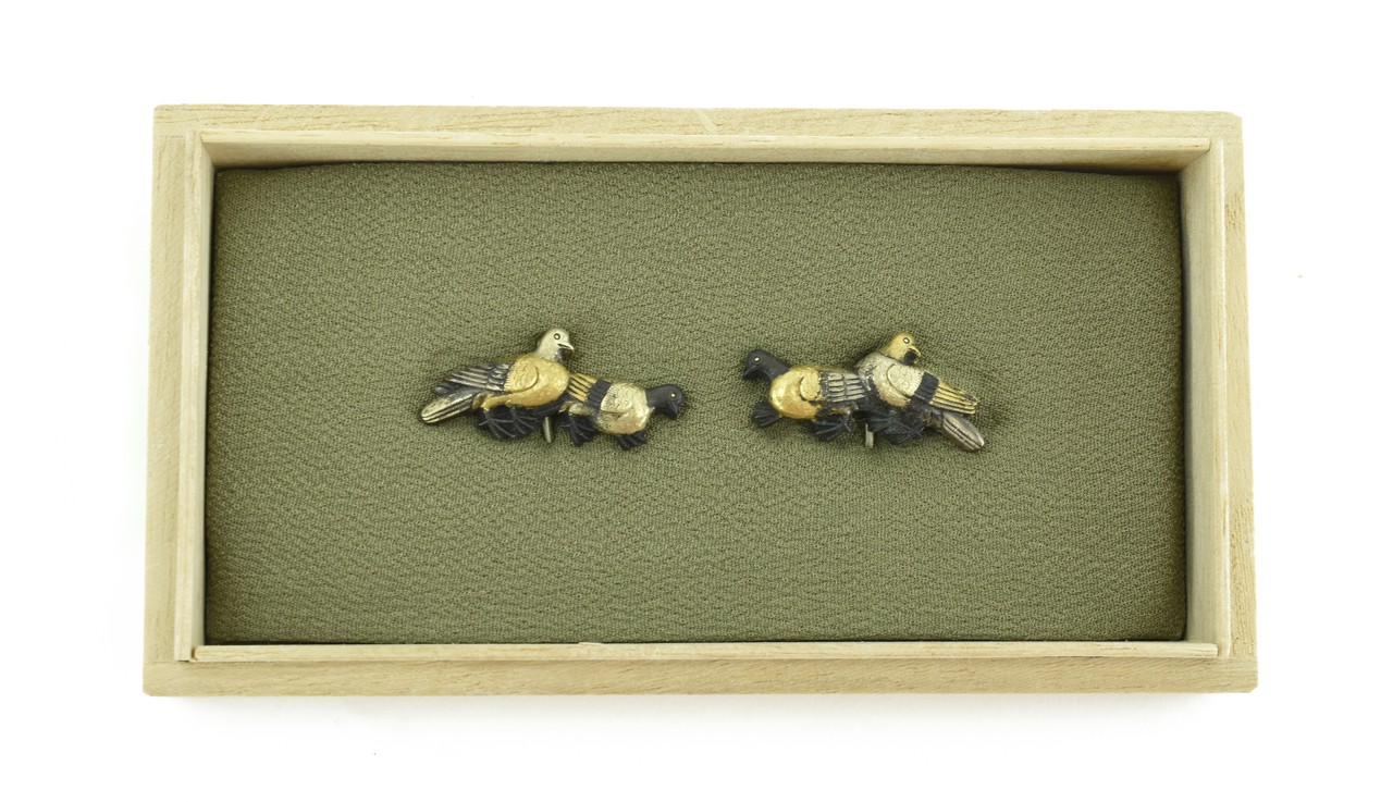Kinko Menuki. Birds with gold, silver and shakudo highlights. Unsigned.