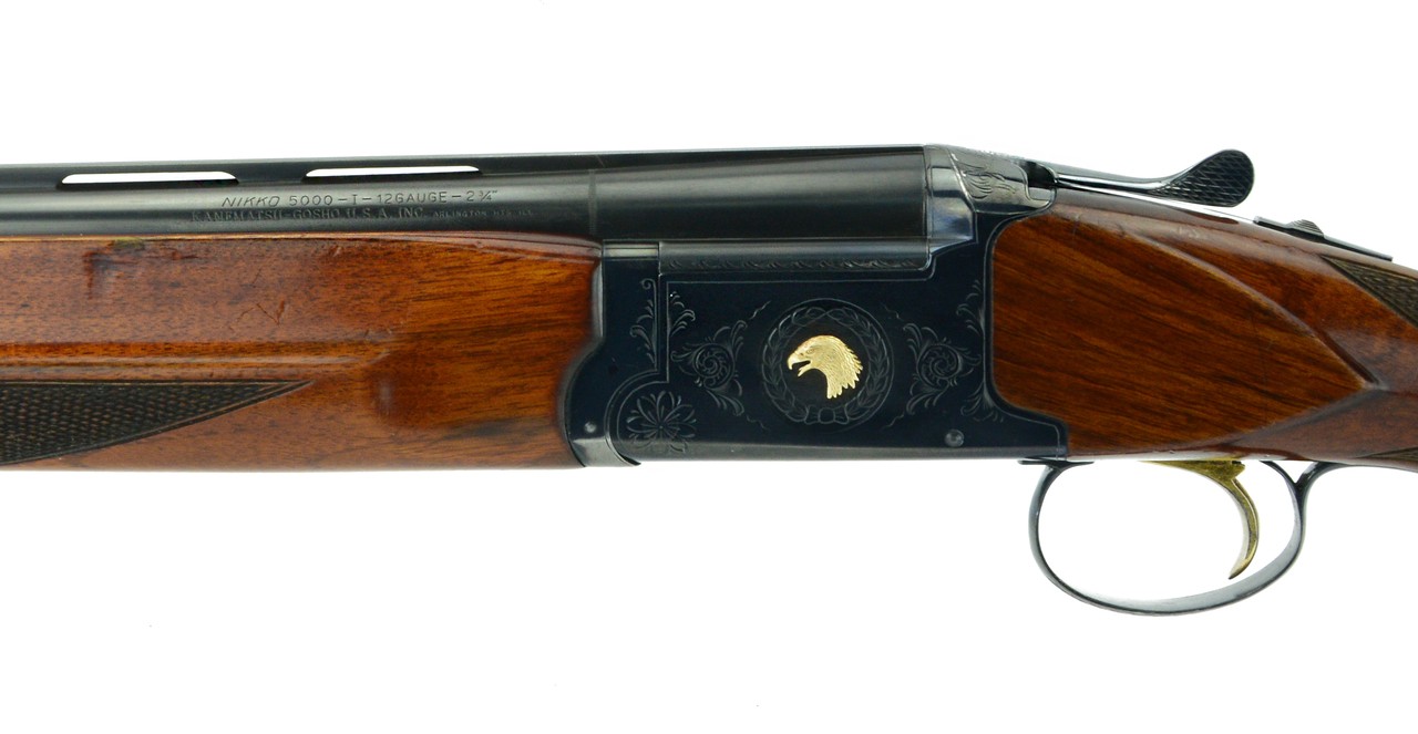 Nikko 5000 I 12 Gauge shotgun. Over/under field gun with 26” modified/improved cylinder barrels. “Golden Eagle” model in very good condition.