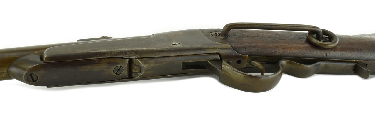 Gallagher Civil War Carbine. .52 Caliber with a smooth dark gray patina throughout. 2nd Model gun with the Richardson and Overman marking on lock. Wood is very good. No visible cartouches, but very good looking. Bore has strong rifling and some pitting.