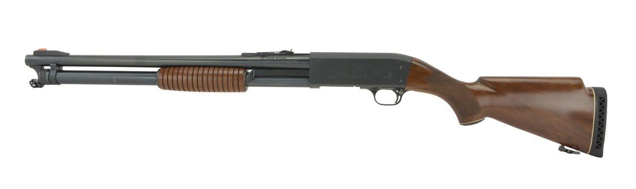 Ithaca Model 37 DS Police Special 12 Gauge shotgun. D.S. Police Special deluxe riot gun. Has 20” barrel with rifle sight, extended magazine tube, polished blue finish and checkered Monte Carlo stock. A great gun in beautiful condition.