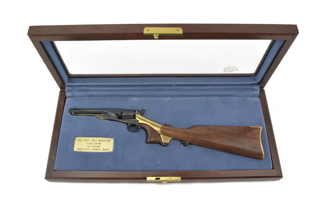 Colt 1860 Army with Shoulder Stock Miniature. Made by Colt for the U.S. Historical Society. Serial number 156. Mint condition and comes in original case.