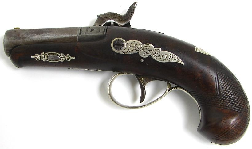 Henry Deringer Percussion with 1 7/8 barrel to front of breech plug. Marked on barrel C. Curry San Fran Cala Agent. Very nice (ah1583)