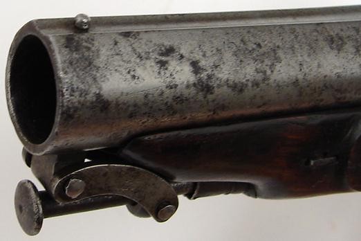W & J Rigby Percussion sidelock pistol with silver breech bands and captive ramrod. Works fine. Approximately .60 caliber. (ah1976)