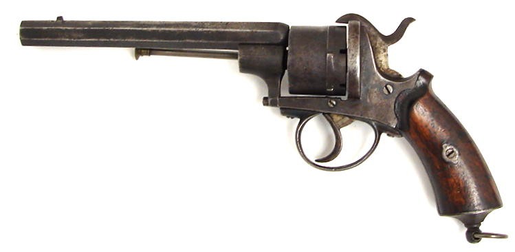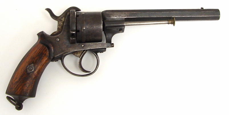 Belgian Pinfire revolver with nice grips, action works perfectly and cylinder locks up tight. Proof marks are all visible. Many were imported during the Civil War!