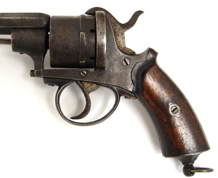 Belgian Pinfire revolver with nice grips, action works perfectly and cylinder locks up tight. Proof marks are all visible. Many (ah2261)