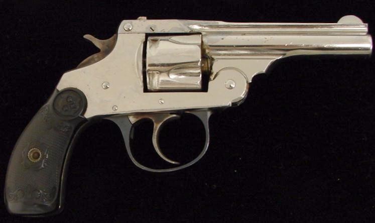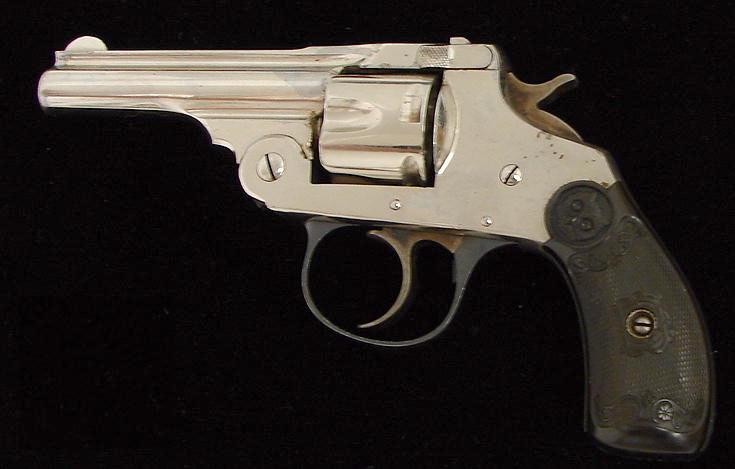 Iver Johnson .32 caliber breaktop revolver. Excellent owl head grips. Early latch opener. Gun unfired. Has 98% nickel.