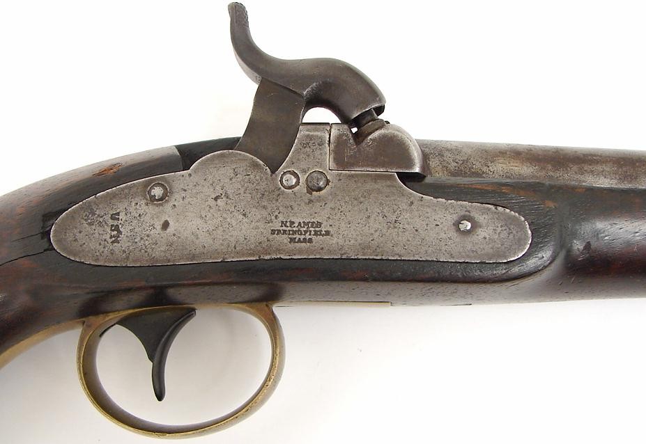 US Model 1842 Naval percussion pistol. Smooth gray and brown patina on metal. All markings are sharp and clear. Cartouche is sti (ah2564)