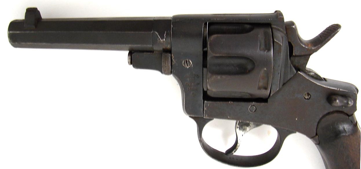 Italian model 1889 service revolver 10.4MM caliber. The bore is good. Brown patina with 15% blue. Produced by Glisenti in 1894. (AH2624)