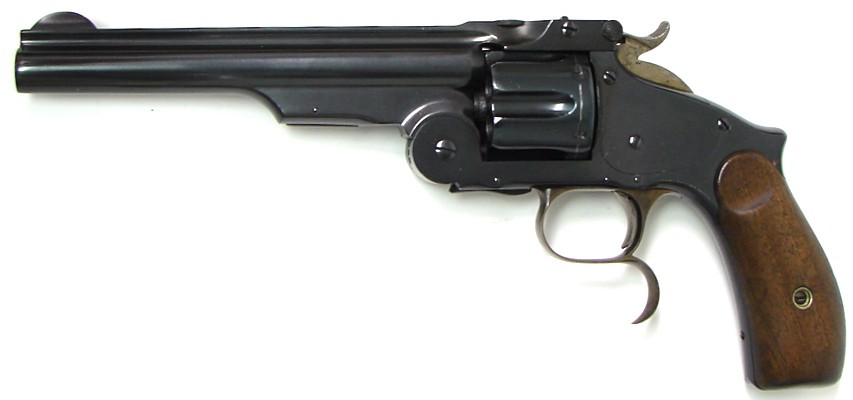 Smith & Wesson Russian Model .44 Russian caliber revolver. Gun has been factory refinished to mint in 1966. Gun is very tight, action works perfect. Bore is fair with some roughness. Grips are excellent. Beautiful factory work.