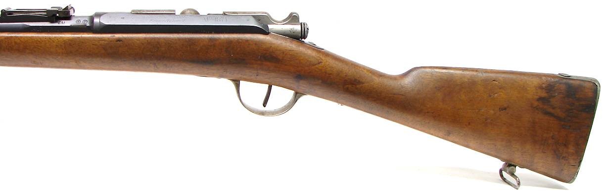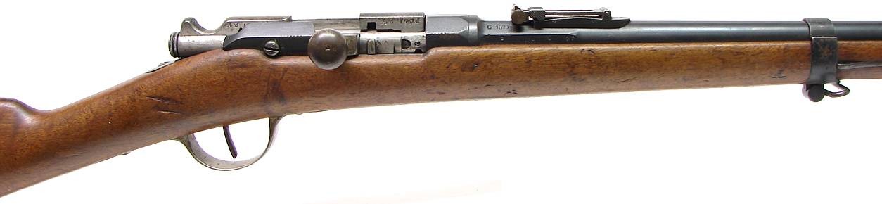 Rare French model 1874 GRAS .22 caliber rifle. Originally produced by the French Arsenal Chatellerault in 1879. At some later time. the barrel was sleeved and the bolt head modified for caliber .22 ammo. The barrel was shortened to 28" and new sights installed. Excellent bore. All matching serial numbers. Rare Military Trainer!