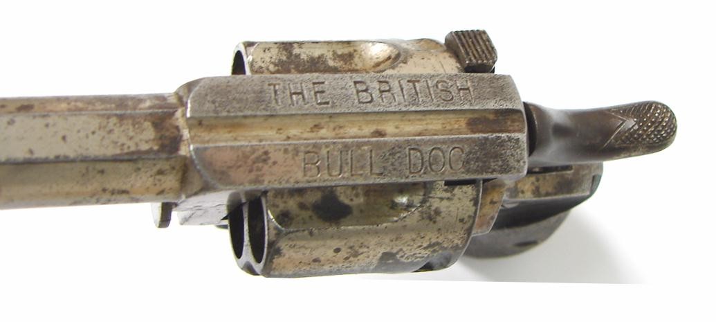 British Bulldog .44 caliber revolver. No British proofs. It does have an usual mark on the left side of frame. It is a "Sun" fac (AH2975)