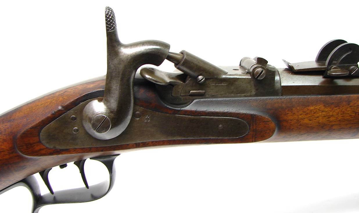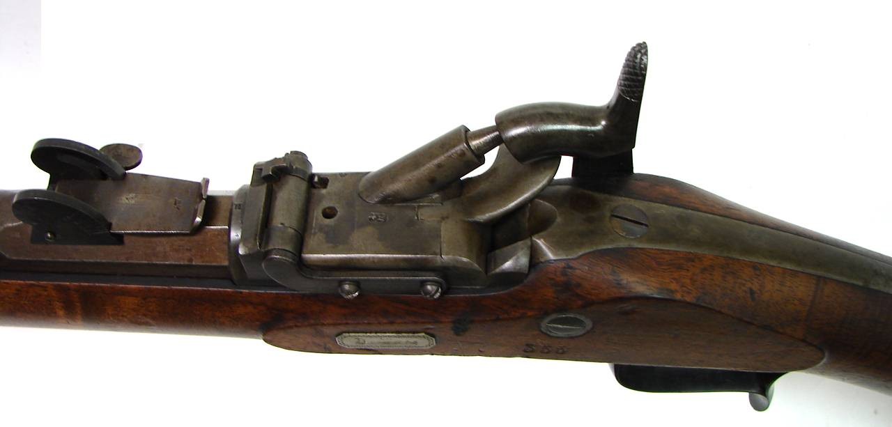 Swiss Model 1864 .41 Swiss Rimfire Jaeger rifle. Cartridge conversion. T.H. Klaus, Swiss Inspector marked on loading door. Top o (AL3178)