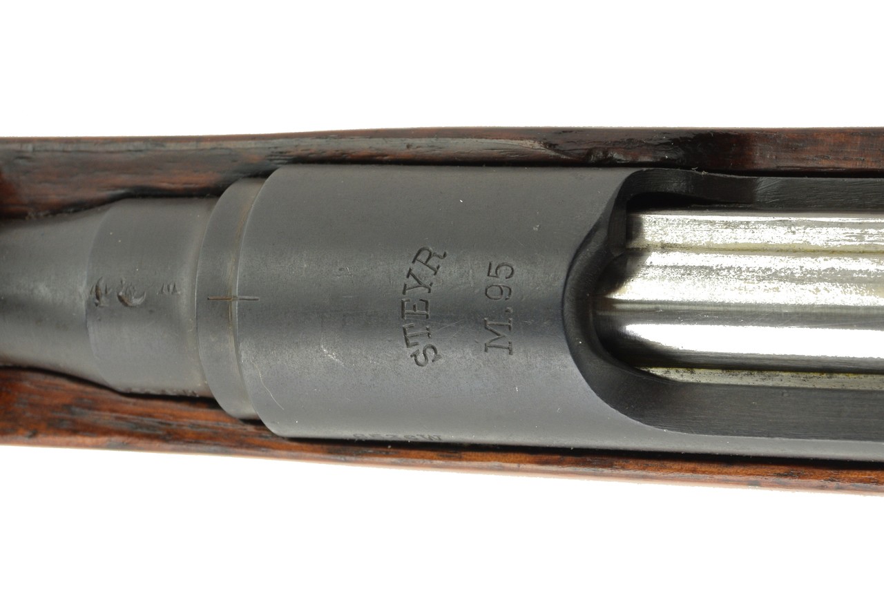Steyr M95 8x56R caliber rifle. WWI Austro-Hungarian rifle made in 1917 and arsenal refurbished post war. Serial numbers are matching. Bore is excellent. Very good plus overall condition.