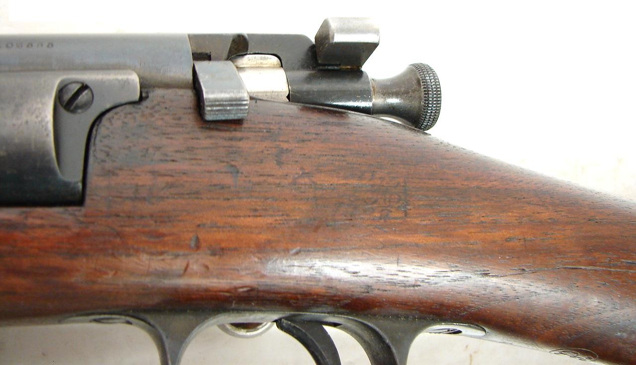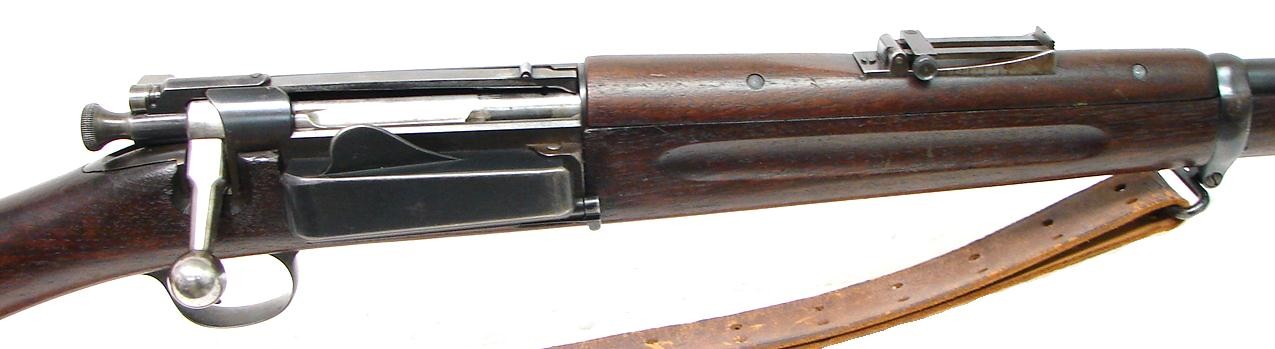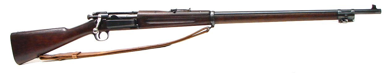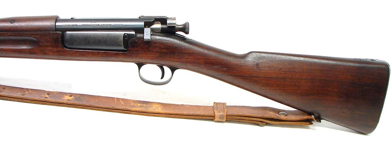 U.S. Model 1896 Krag .30/40 Krag caliber rifle. The stock cartouche is faint and looks to be 1898. The serial number would also indicate 1898 production. There is a P firing proof on the underside of the stock at the wrist. Correct rear sight. Original sling. Excellent bore and wood. About 92% original finish. Correct rifle in excellent condition.