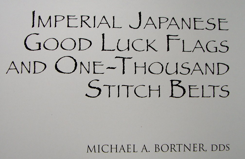 Imperial Japanese Good Luck Flags and One-Thousand Stitch Belts by Michael A. Bortner, DDS. This is the first book if its kind that focuses solely on this subject and answers many of the question that both novice and experienced collectors have had with regard to yosegaki hinomaru and senninbari.