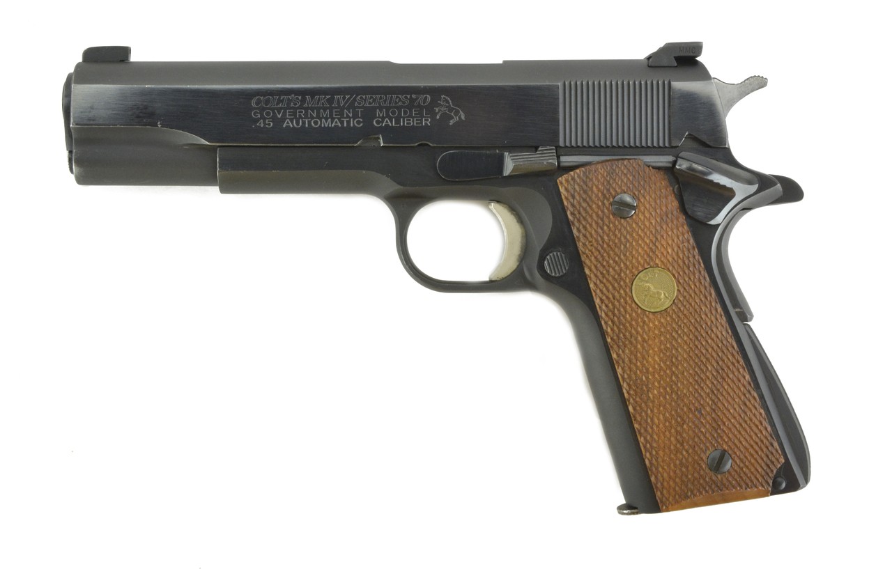 Colt Government .45 ACP caliber pistol. Original Series 70 Model with MMC sights added. Near excellent condition with light wear. Comes with box.