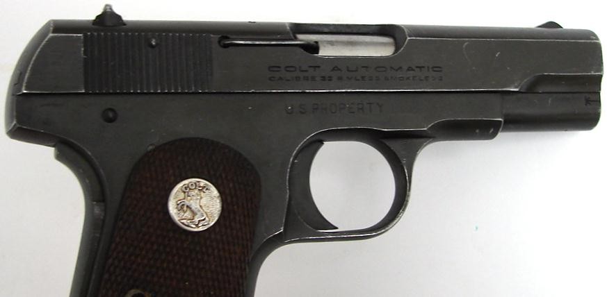 Colt 1903 .32 ACP caliber pistol issued to Brigadier General J.W. Hanna. Excellent condition with box, instruction sheet and brush (box is a repro).