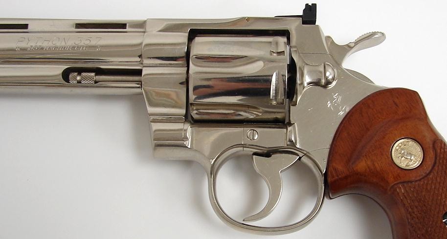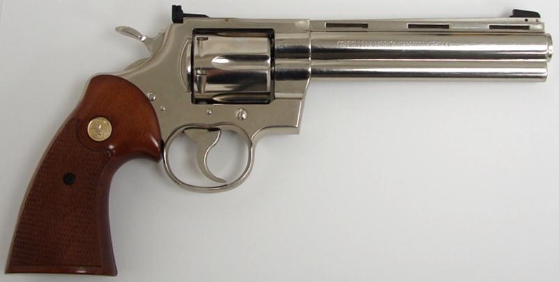 Colt Python .357 Magnum caliber revolver. Early model made in 1967 with 6 barrel and factory nickel finish. Excellent condition (c4424)