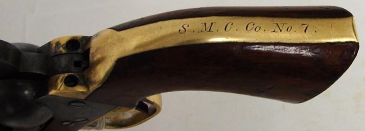 Colt 1849 Pocket revolver with 6 barrel. Serial number 296367. Interesting gun marked S.M.C. Co. No. 7. Very probably a guard (c4795)