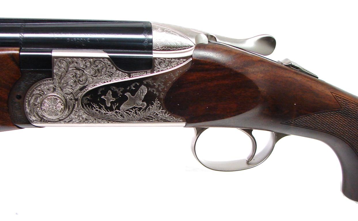 Beretta SV10 Perennia III 12 gauge shotgun. Over/under Field Gun with 28" barrels and game scene engraved receiver. Comes with case and chokes. Excellent condition.
