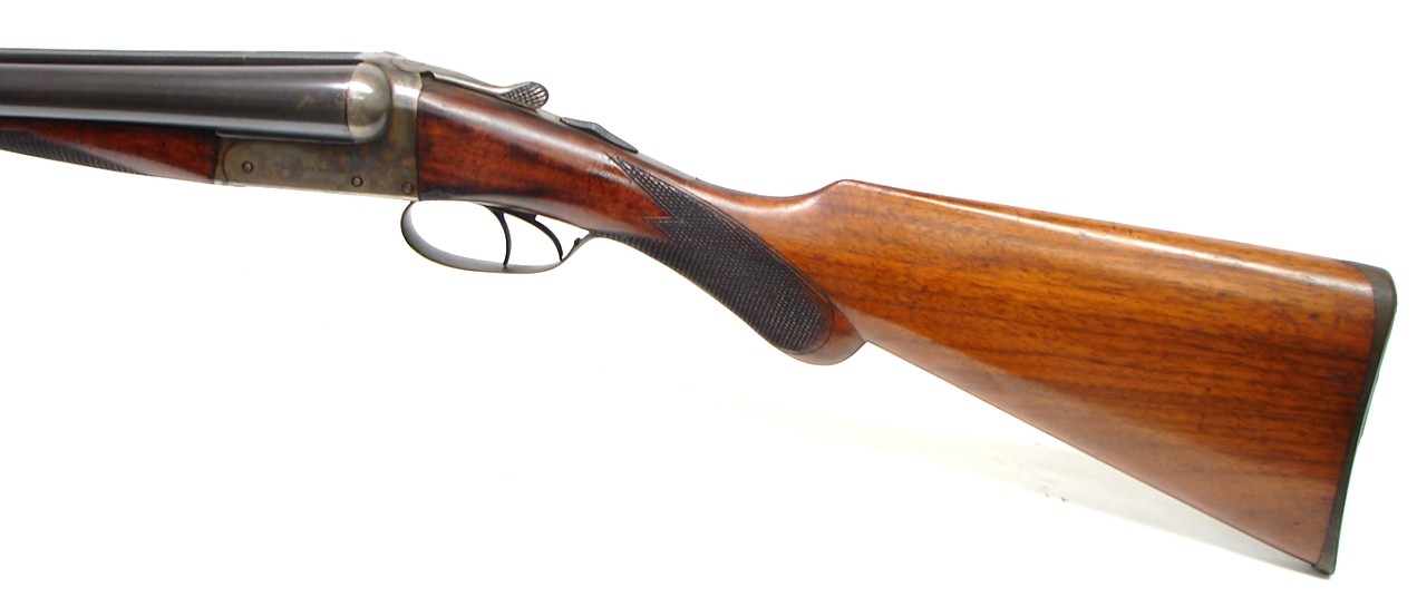 Remington 1900 12 gauge shotgun. Good. Bright bores but each barrel has some pitting near the chambers. 30" barrels. Barrels have 95% blue and receiver has 95% case colors. Stock is about excellent. Gun is near excellent condition.
