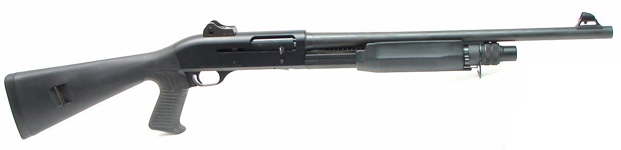 Benelli M3 Super 90 12 gauge shotgun. Semi-pump action defensive shotgun with ghost ring sights and pistol grip buttstock. Excellent condition.