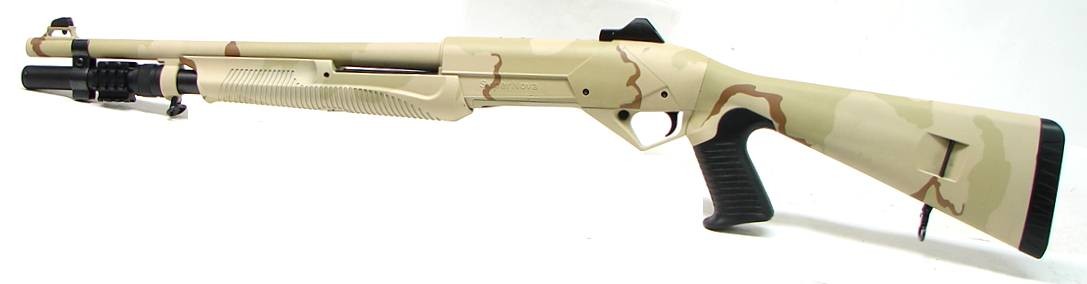 Benelli Super Nova 12 gauge shotgun. Tactical pump riot gun with desert camo finish, ghost ring sights and pistol grip stock. Ex (s4236)